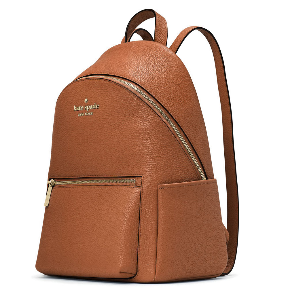 Kate Spade Backpack In Gift Box Leila Pebbled Leather Medium Dome Backpack Warm Gingerbread Brown # K8155