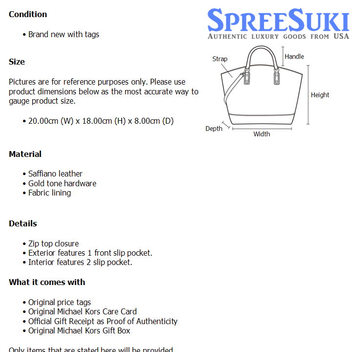 All our products are 100% authentic and purchased from Michael Kors stores in USA. We are a reputable registered business in Singapore and it is illegal to sell counterfeit goods in Singapore. This product also comes with a gift receipt which is printed by the Michael Kors store that we purchased the item from. It states the item that we purchased and the Michael Kors store that it was purchased from, proving the authenticity of the item. Buy with confidence.