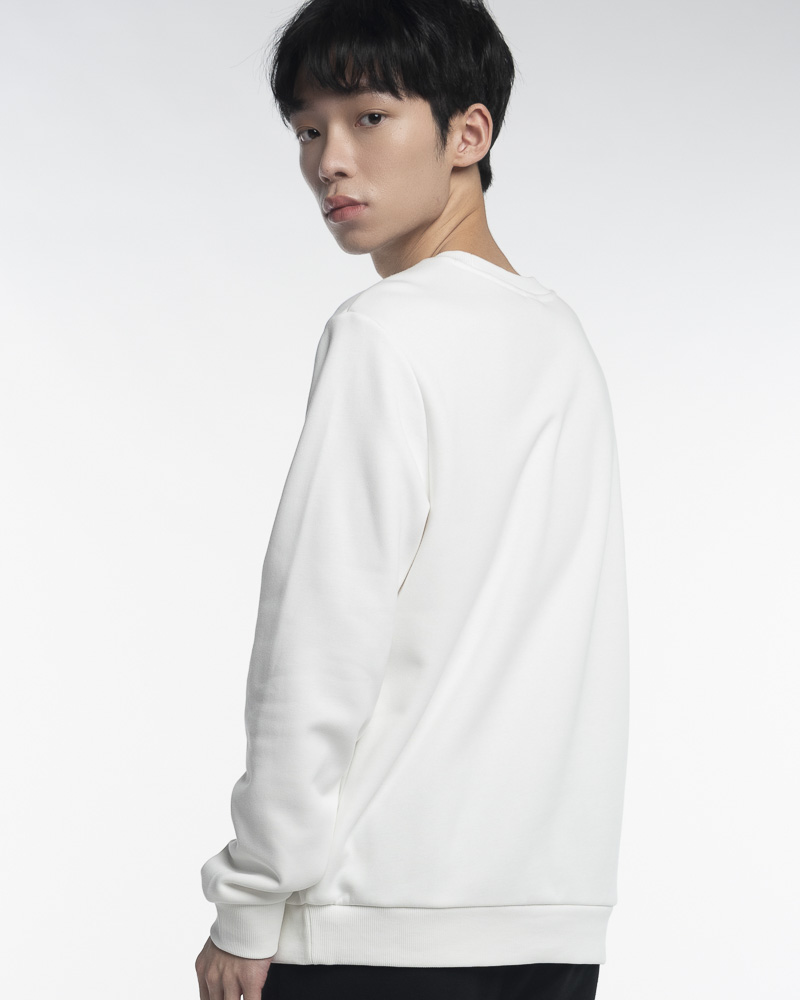 Yishion Men Solid Coloured Long Sleeve Sweatshirt with Outdoor Slogan (White)
