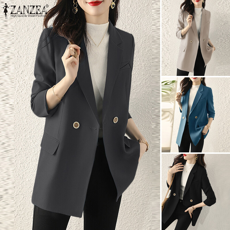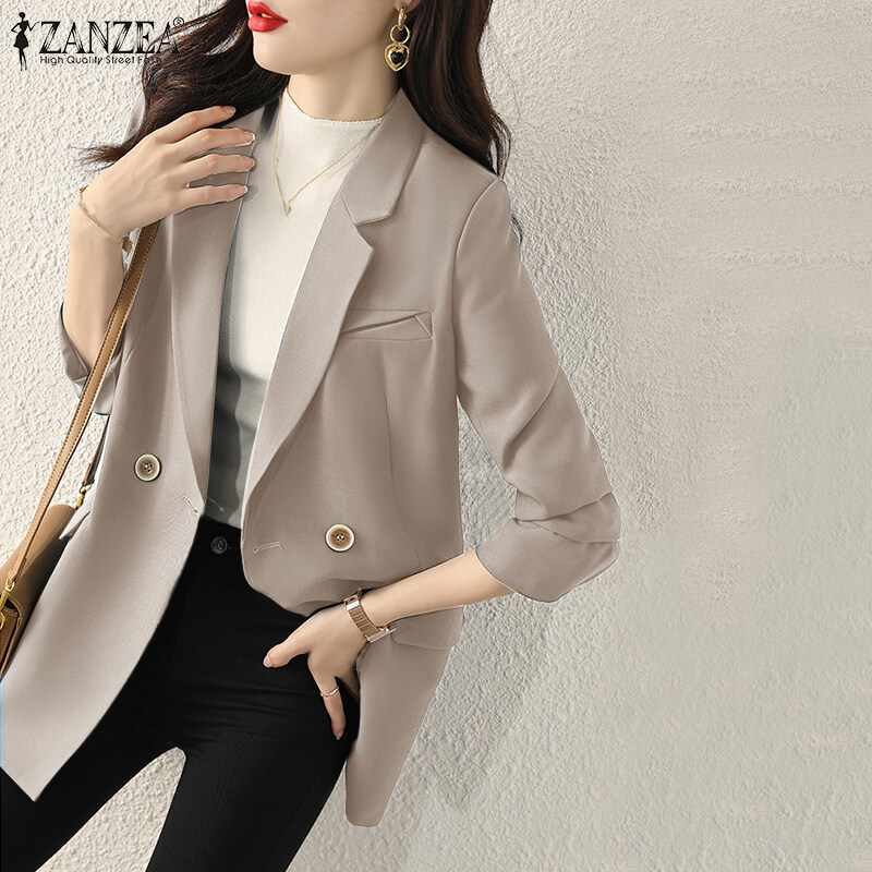 ZANZEA Women Elegant Commute Suits Formal Office Work Button Up Solid Irregular Blazer #11