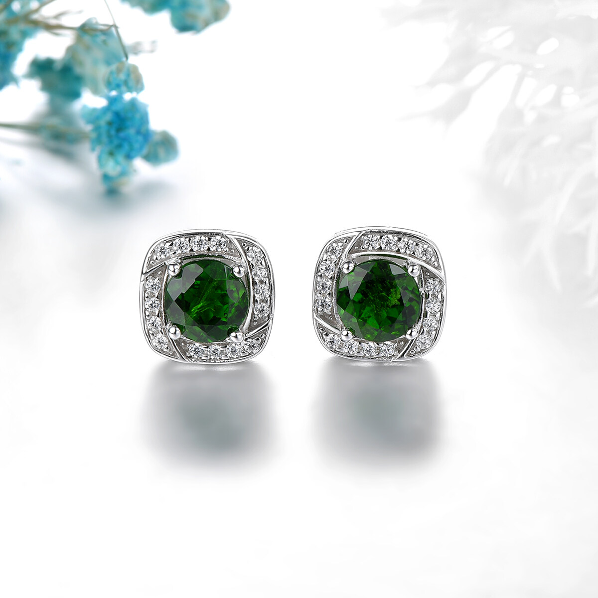 Lohaspie Jewelry Real Silver Stud Earring With Stone Natural Chrome Diopside Earrings Green Gemstone Earring For Lady Christmas Gift Jewelry