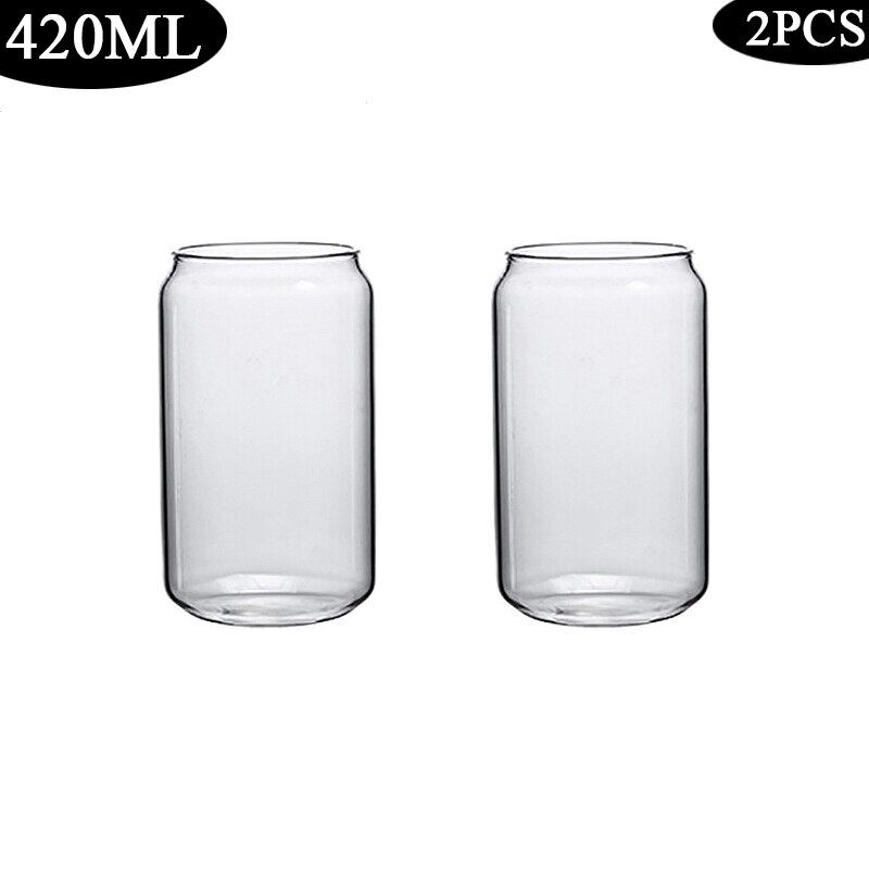 420/600ML 2-6PCS Transparent Glass Cup With Lid Straw Bubble Tea Cup Juice Coffee Beer Can Milk Mocha Breakfast Mug Drinkware