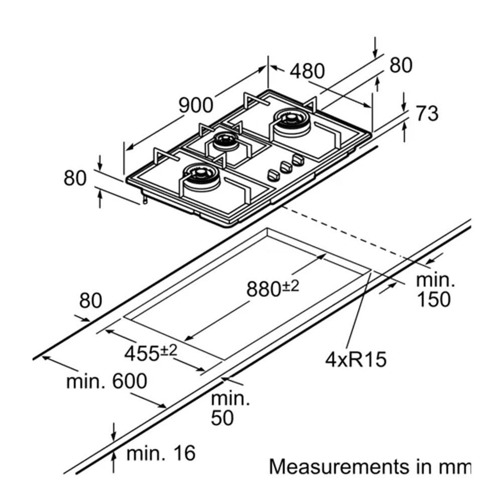 (Bulky) Bosch PBD9351SG (PUB) 90cm Stainless Steel Gas Hob